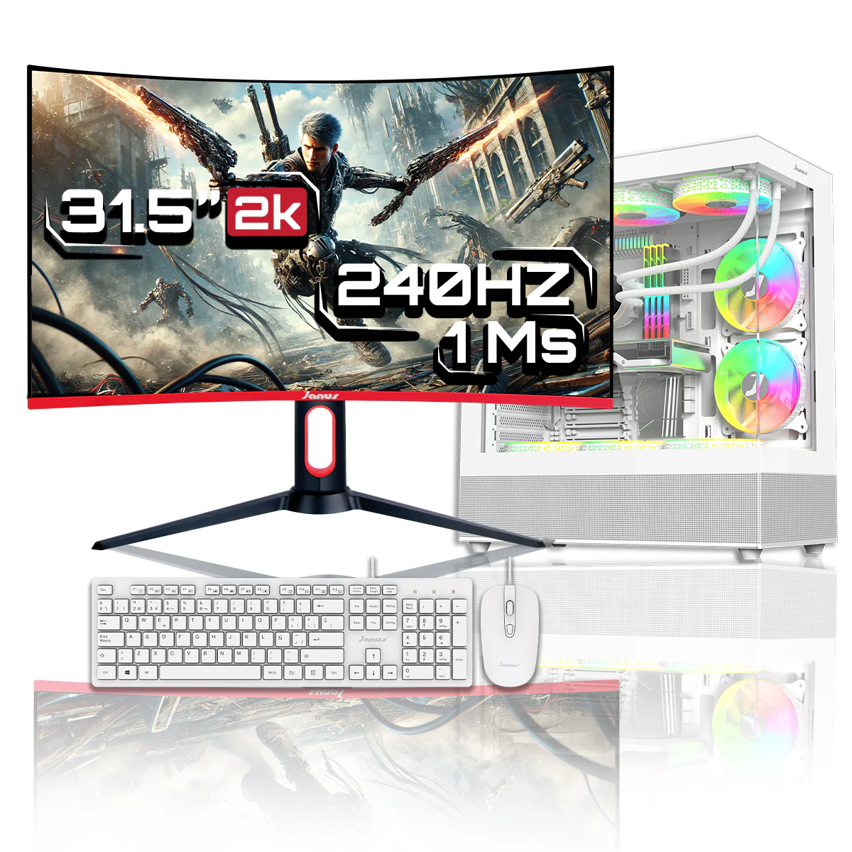 COMPUTADOR GAMER CON MONITOR JANUS LED 32" (J32240SVAGOHD) XTREME GAMER 240HZ/ CURVO / Resolución 2560 x 1440 2K/ tiempo de respuesta 1ms / HDMI X 2/ DISPLAYPORT X 2/ AUDIO OUT / BASE DE